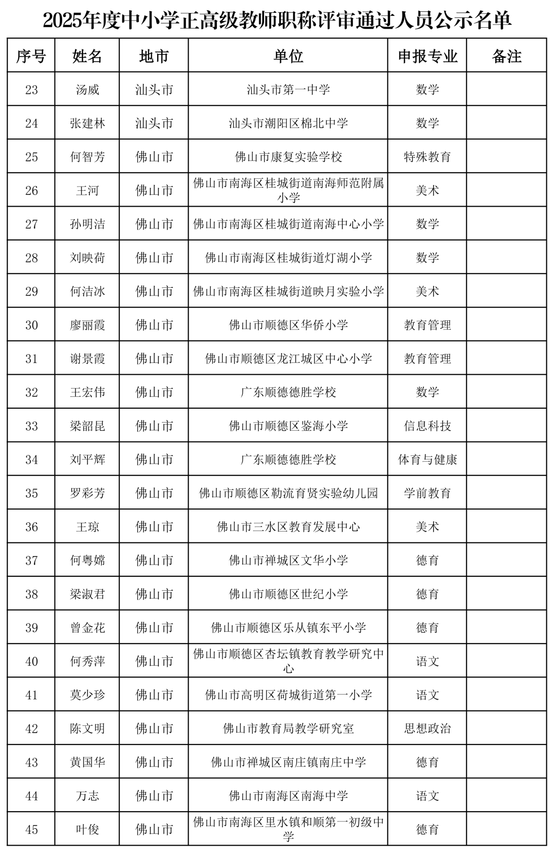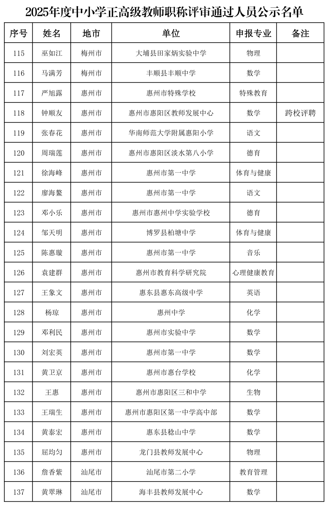 附件:2025年度中小学正高级教师职称评审通过人员公示名单