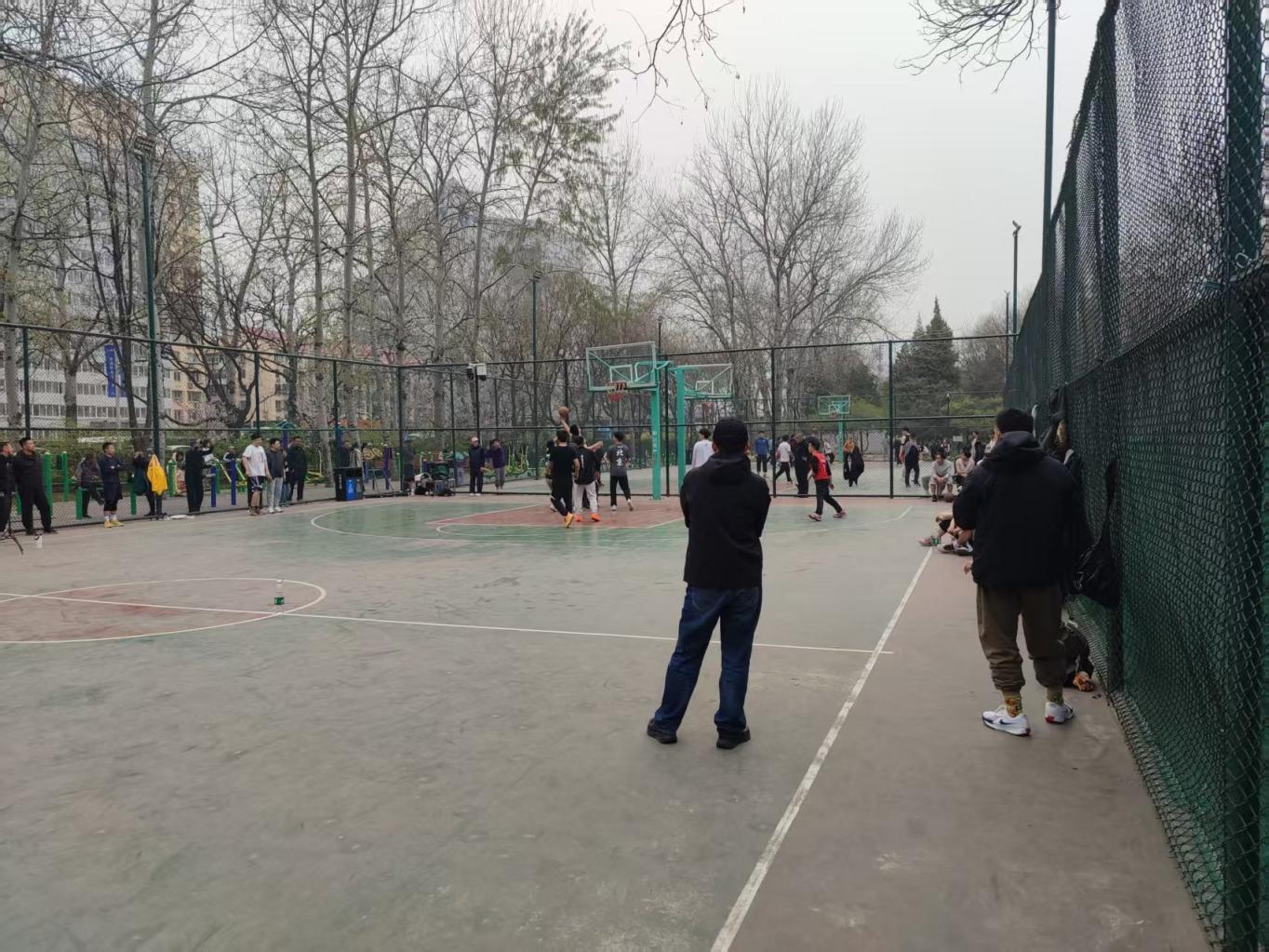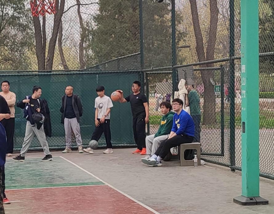 小松和同学们在三环内万芳亭公园接不上拨。与此同时,在四环边的迪卡侬大郊亭店,磊磊和同学们却在免费的篮球场上肆意玩耍。场地不大,只有一个篮筐,但全是同龄人,对抗强度能匹配得上。