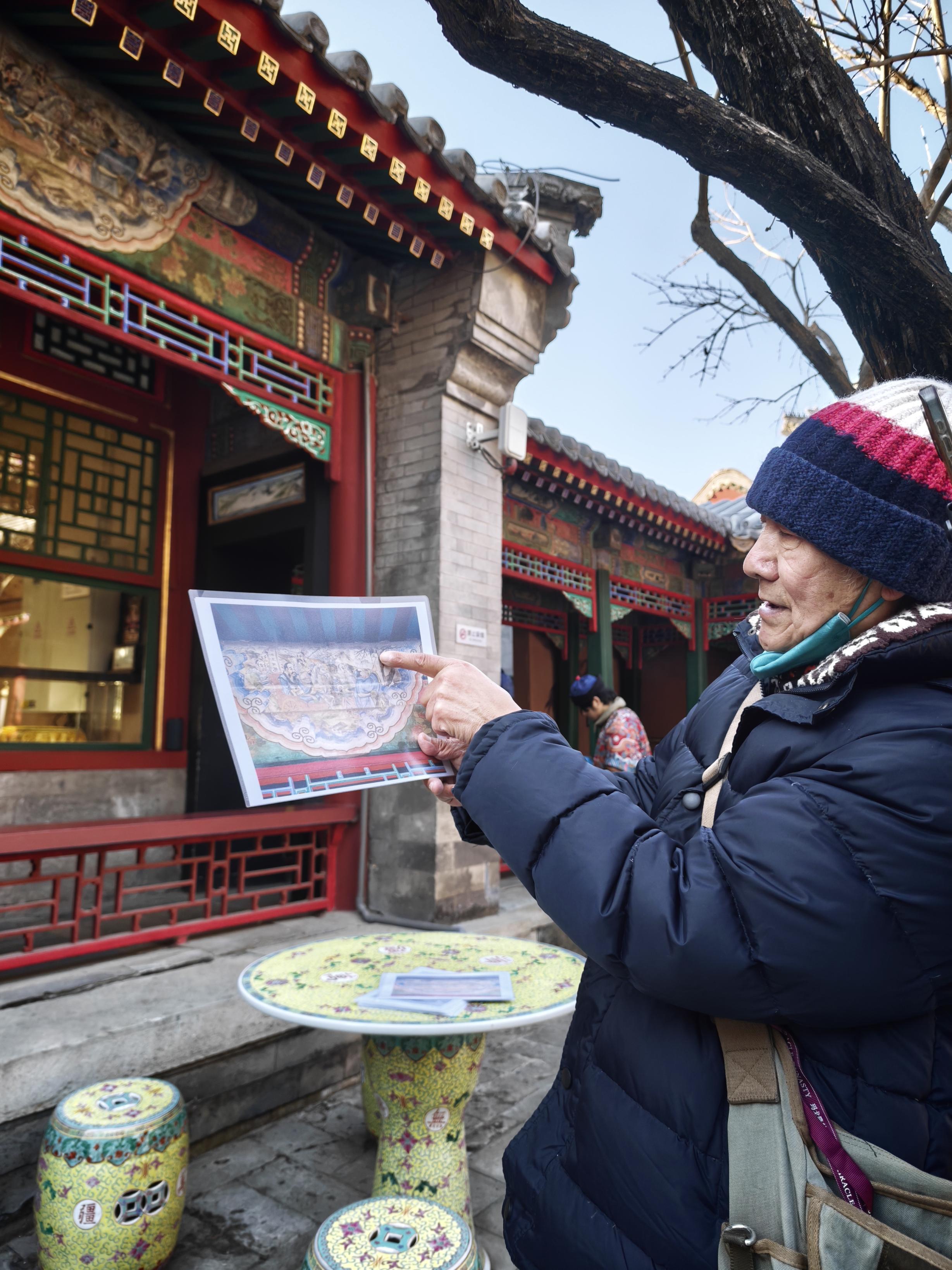 于是,史贵生试着去查、去问,没想到,这一钻进去就再也“出不来”了。退休后,他还成为了北京市文保协会会员和北京史地民俗学会会员,有了更多与同道交流、学习的机会。老伴总打趣他“走火入魔”,白天脑子里装的是彩画典故、碑刻踪迹,晚上翻书核对到深夜。但对史贵生来说,这份“魔怔”里满是乐趣:“破解一个不知道的故事,搞懂一块碑刻上的内容,能高兴好几天。”