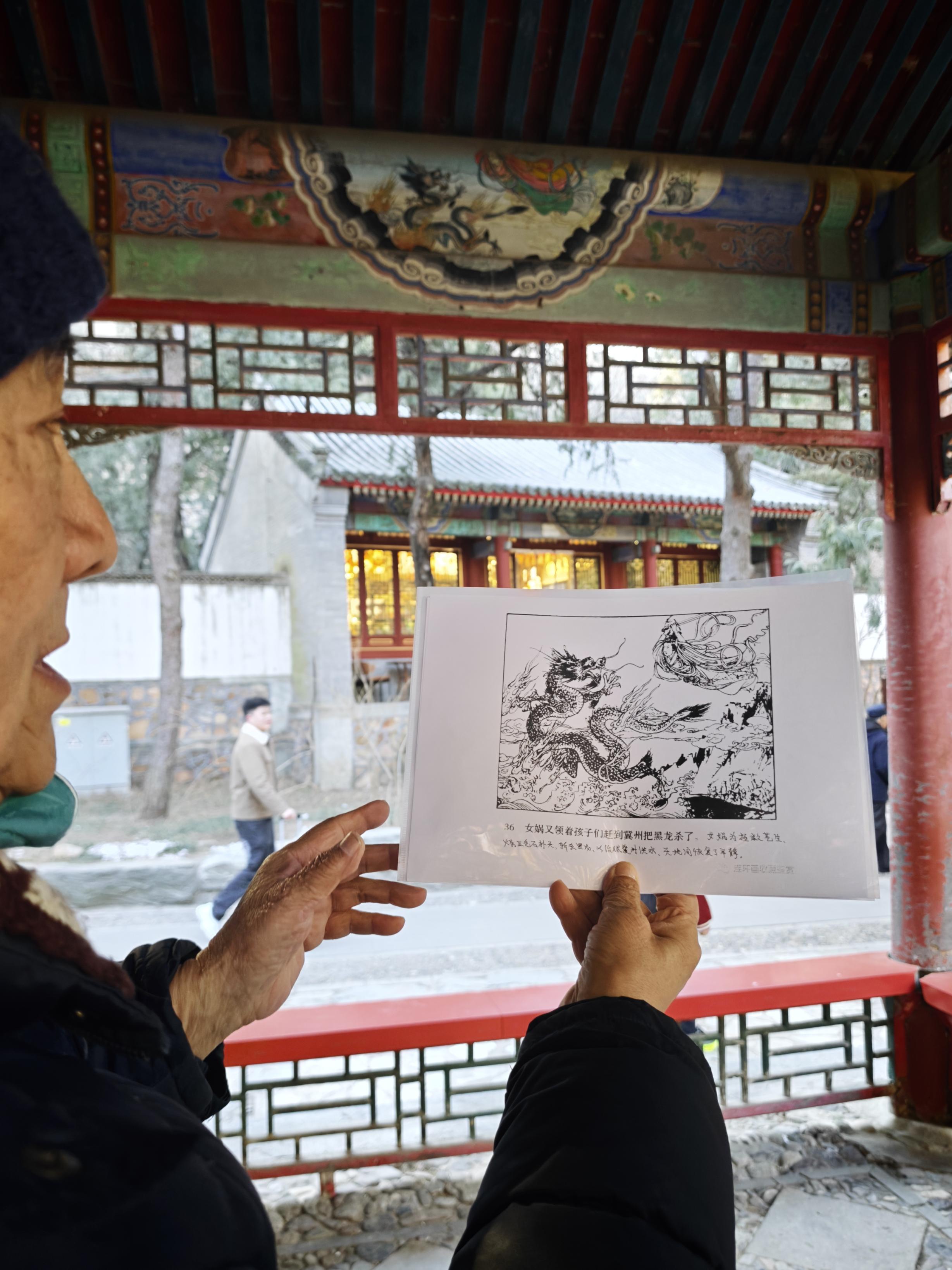 让史贵生难忘的,是困扰他二十多年的“女娲补天”彩画之谜在群里找到了答案。早在2000年,他就拍下了颐和园的一幅彩画,画面里有女子和龙,却始终看不出题材出处。直到不久前,他把照片发到群里求助,很快,一位群友发来一张完整的“女娲补天”原画照片,画上女娲手持宝剑斩杀黑龙的细节,与他拍下的彩画一一对应。“那种感觉,就像心里一块石头终于落了地,畅快!”