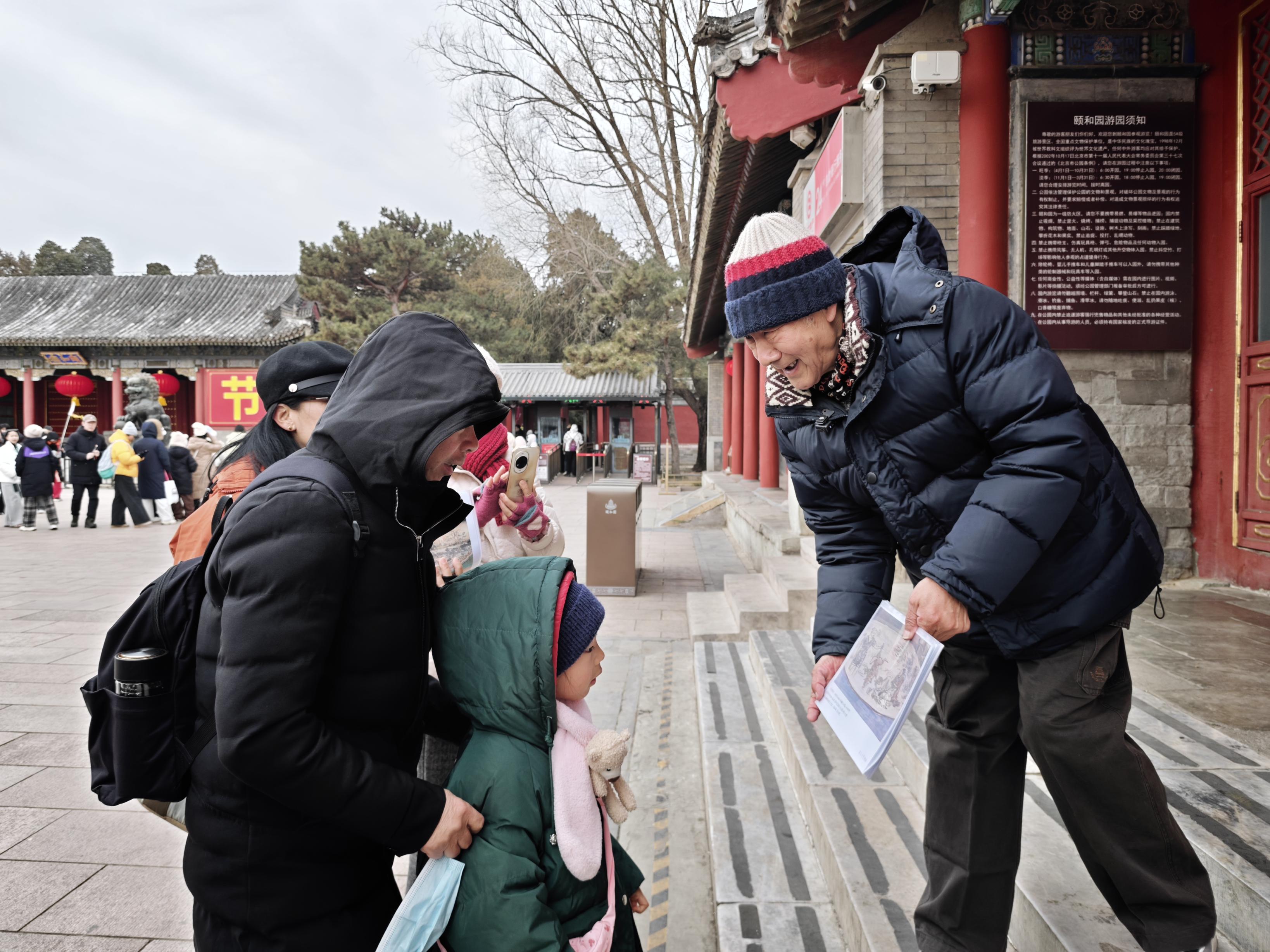 史贵生在颐和园东宫门外开始讲解